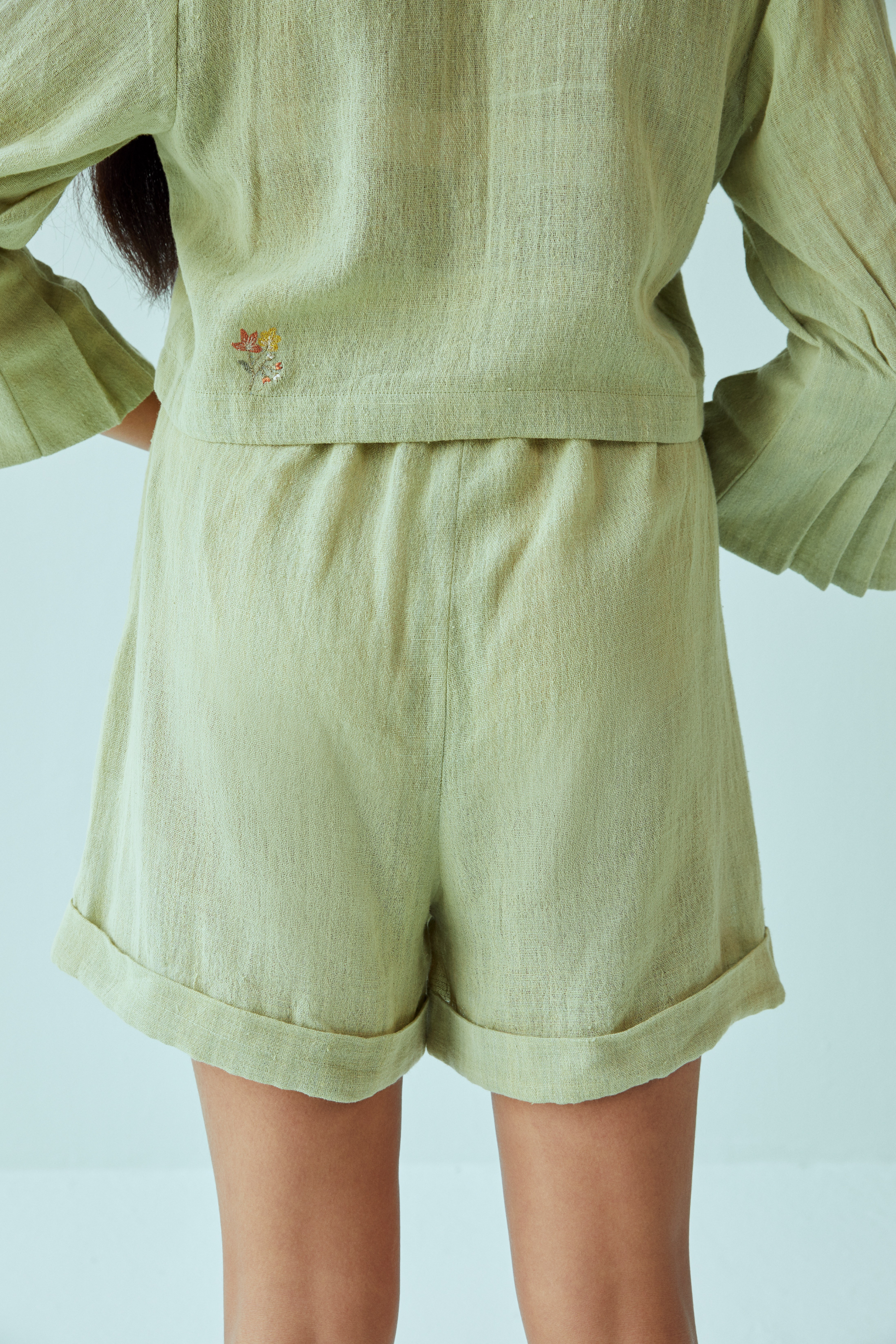 We're bringing our SUI shorts back in full swing! The silhouette is always a staple for hot summer days, and this time round, it also shows off a radiant summer green that's been herbal-dyed by our green partner, Truetone Ink. Being inspired by nature, our greens are always present in some way in our chapters and we're excited to bring you a new shade that's even more vibrant than we have created before.